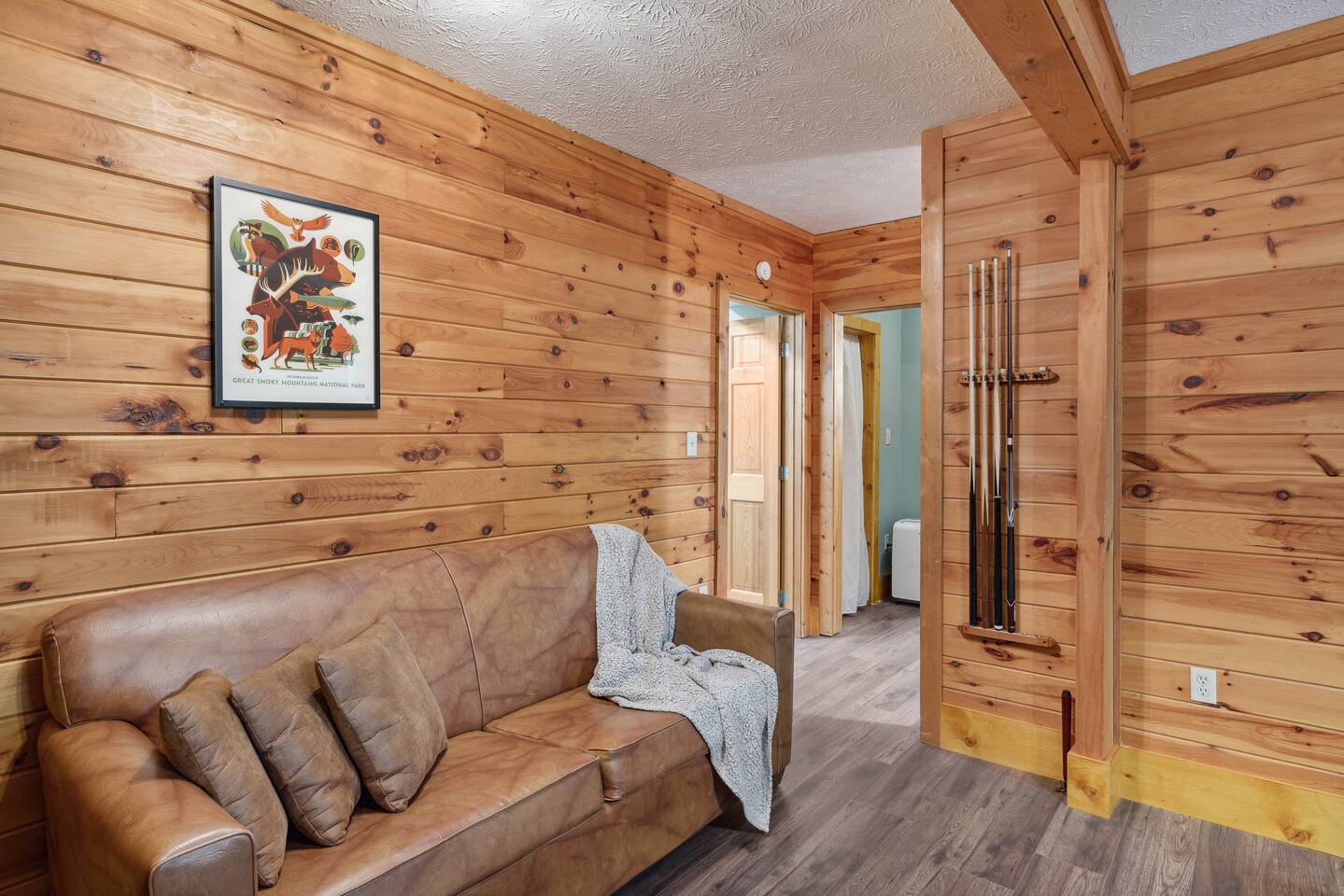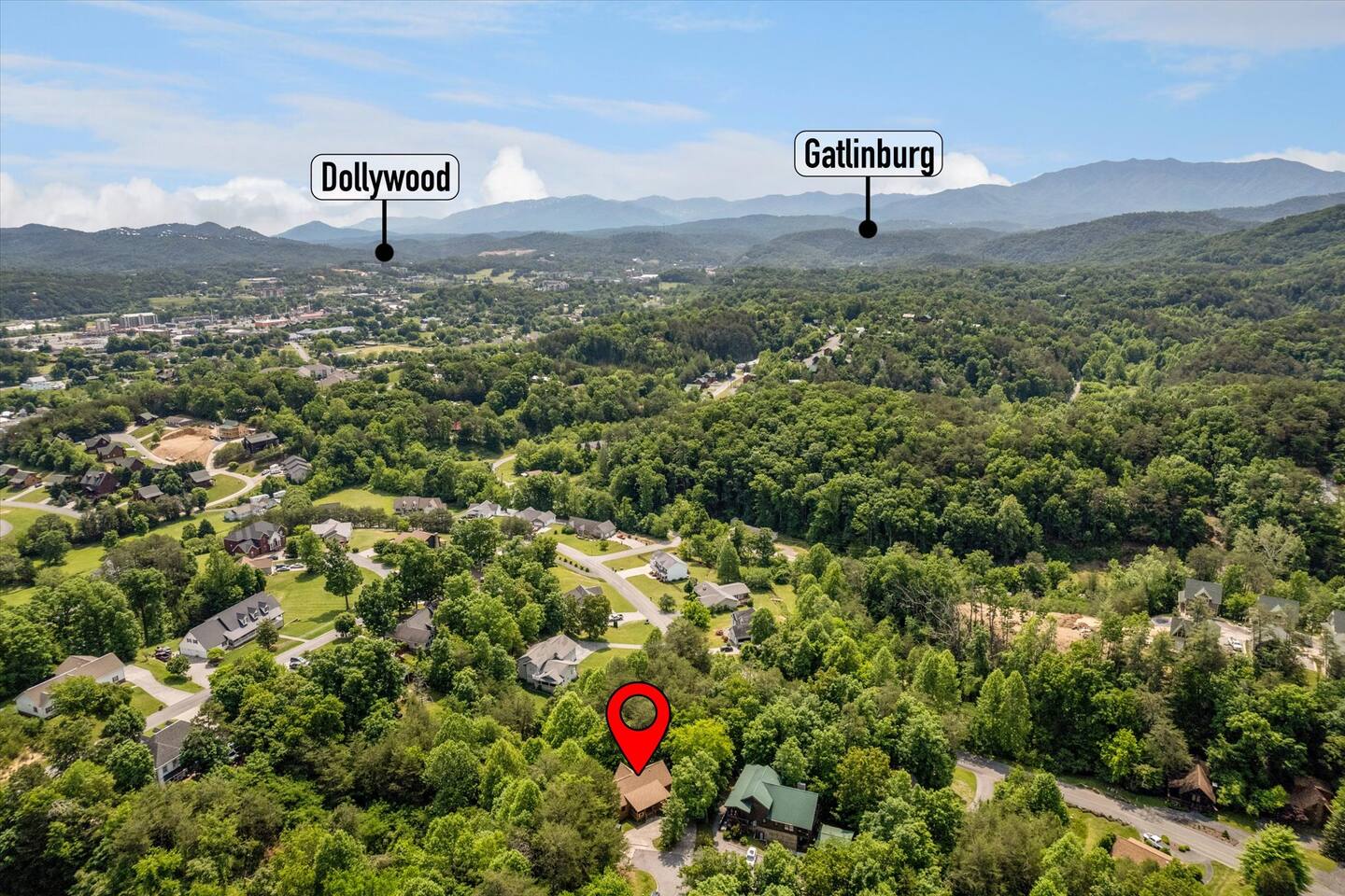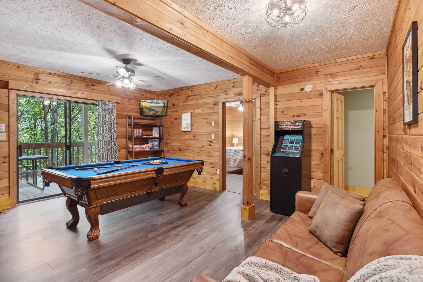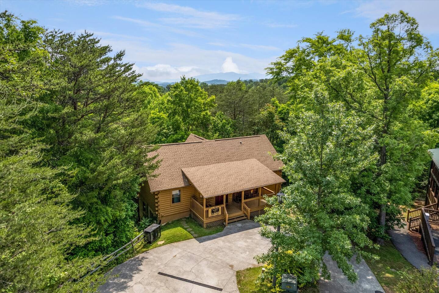 📸 Check the photos for a full floor-plan and aerial drone views that show off just how close you really are to the attractions. --- 🛌 **SLEEPING ARRANGEMENTS** We sleep up to 13 guests comfortably across 4 private bedrooms + bonus sleeping space in the game room: • Bedroom 1 – King bed, private bath with spa tub • Bedroom 2 – King bed, private bath with spa tub + desk & LCD monitor • Bedroom 3 – Queen bed, private bath with spa tub • Bedroom 4 – Bunk bed (twin over full) + futon with adjacent full bath • Game Room – Sleeper sofa + nearby full bath and half bath --- 🌲 **OUTDOOR LIVING** • Covered front porch with swing and cushioned sectional • Two private rear decks with rocking chairs, outdoor dining sets, and a BBQ grill • Brand new hot tub surrounded by trees • Side yard available for outdoor activities (note: it’s hilly) --- 🔥 **INDOOR LIVING** • 6 Smart TVs throughout the home • Full sports package: ESPN, SEC, MLB, Golf Channel, NHL, NBATV & more • Gas fireplace, ceiling fans, board games, and arcade with 60+ games • Cozy living spaces, dining area, and 3 jetted spa tubs • Fully furnished --- 🍳 **EVERYDAY ESSENTIALS** • Fully equipped kitchen with stainless steel appliances • Cooking basics, flatware, dishware, and coffee maker • High-speed WiFi (50+ Mbps), keyless entry, pack n’ play, washer/dryer on site and free • Central heating & AC, fresh linens/towels, starter toiletries, Iron/board and cleaning essentials --- 🚗 **GETTING AROUND** • Skip the Parkway traffic! Access Publix, Kroger, and tons of shops, gas stations, and restaurants without ever hitting the main drag. • Dollywood and nearly every Pigeon Forge attraction are within 5 miles—spend more time exploring and less time driving. --- 📍***LOCATION*** Just 1 mile from the Parkway, this cabin offers unbeatable access to the best of the Smokies—without steep roads or heavy traffic. Whether you're here to explore, relax, or do a little of both, you're never far from the action. • 🎡 The Island in Pigeon Forge – Shops, rides, and live music (4-7 min) • 🎢 Dollywood & Splash Country – 5-8 min drive • 🏁 Go-Karts – 5 min • 🥘 Old Mill Historic District – Southern dining, bakery, shops (6 min) • 🛍️ Tanger Outlets in Sevierville – 10 min • 🍷 Tennessee Shine Co. & Moonshine Tastings – 5 min • 🐻 Smoky Mountain Alpine Coaster – 12 min • 🥾 Great Smoky Mountains National Park – 20–25 min to trailheads --- 🅿️ **FREE PARKING** • Huge private driveway fits 6–8 vehicles • Additional on-street parking available --- 🚫 **NO CHORES, JUST CHECK OUT** We don’t believe in checkout scavenger hunts. No stripping beds—just lock up and go.