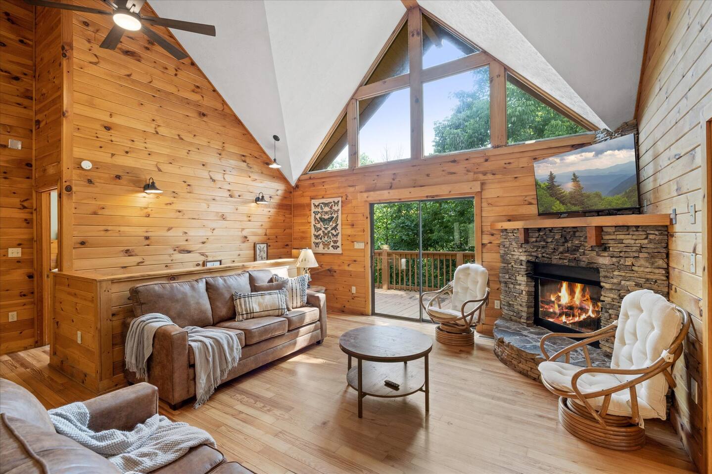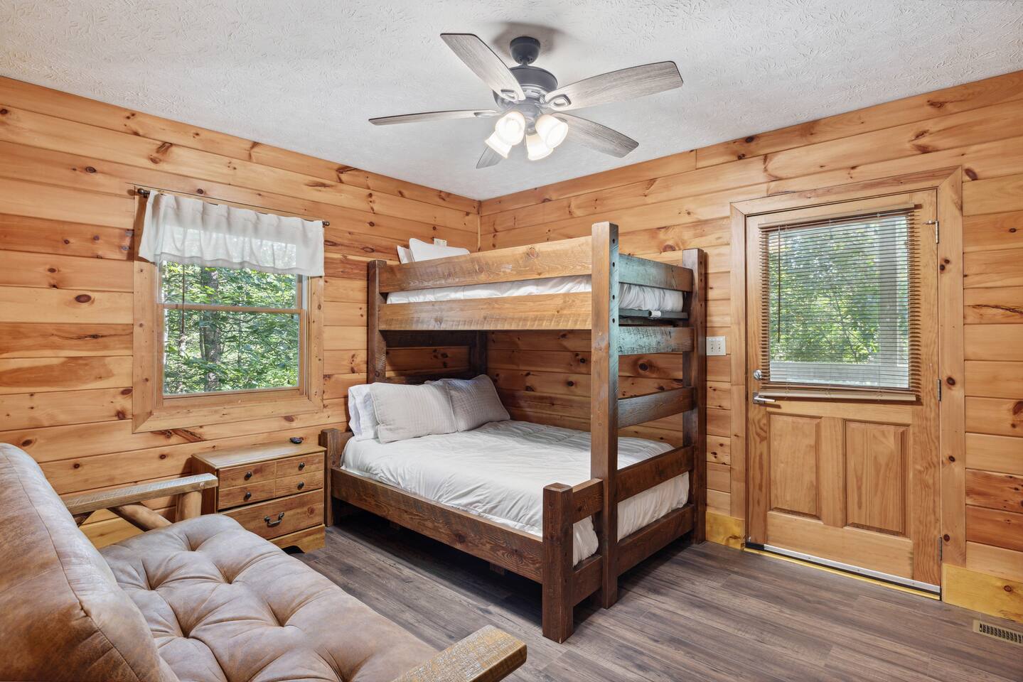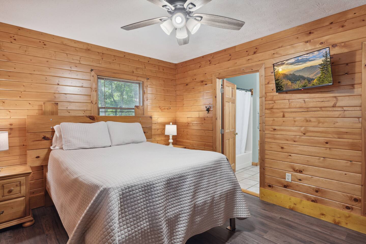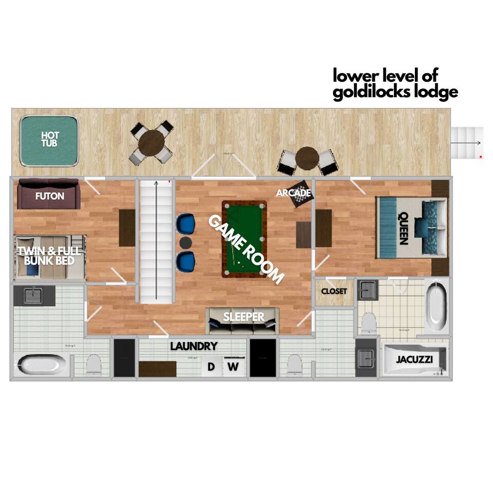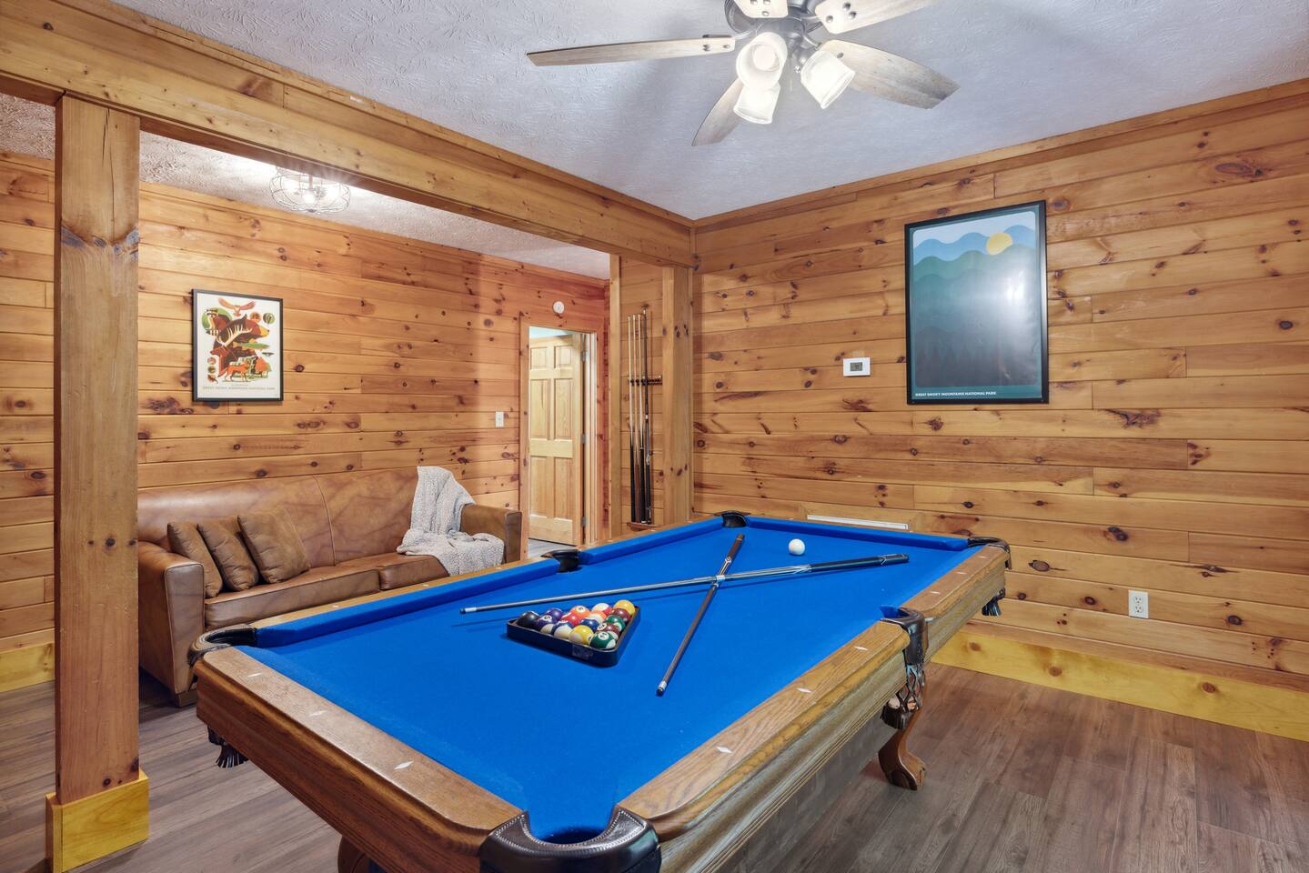 📸 Check the photos for a full floor-plan and aerial drone views that show off just how close you really are to the attractions. --- 🛌 **SLEEPING ARRANGEMENTS** We sleep up to 13 guests comfortably across 4 private bedrooms + bonus sleeping space in the game room: • Bedroom 1 – King bed, private bath with spa tub • Bedroom 2 – King bed, private bath with spa tub + desk & LCD monitor • Bedroom 3 – Queen bed, private bath with spa tub • Bedroom 4 – Bunk bed (twin over full) + futon with adjacent full bath • Game Room – Sleeper sofa + nearby full bath and half bath --- 🌲 **OUTDOOR LIVING** • Covered front porch with swing and cushioned sectional • Two private rear decks with rocking chairs, outdoor dining sets, and a BBQ grill • Brand new hot tub surrounded by trees • Side yard available for outdoor activities (note: it’s hilly) --- 🔥 **INDOOR LIVING** • 6 Smart TVs throughout the home • Full sports package: ESPN, SEC, MLB, Golf Channel, NHL, NBATV & more • Gas fireplace, ceiling fans, board games, and arcade with 60+ games • Cozy living spaces, dining area, and 3 jetted spa tubs • Fully furnished --- 🍳 **EVERYDAY ESSENTIALS** • Fully equipped kitchen with stainless steel appliances • Cooking basics, flatware, dishware, and coffee maker • High-speed WiFi (50+ Mbps), keyless entry, pack n’ play, washer/dryer on site and free • Central heating & AC, fresh linens/towels, starter toiletries, Iron/board and cleaning essentials --- 🚗 **GETTING AROUND** • Skip the Parkway traffic! Access Publix, Kroger, and tons of shops, gas stations, and restaurants without ever hitting the main drag. • Dollywood and nearly every Pigeon Forge attraction are within 5 miles—spend more time exploring and less time driving. --- 📍***LOCATION*** Just 1 mile from the Parkway, this cabin offers unbeatable access to the best of the Smokies—without steep roads or heavy traffic. Whether you're here to explore, relax, or do a little of both, you're never far from the action. • 🎡 The Island in Pigeon Forge – Shops, rides, and live music (4-7 min) • 🎢 Dollywood & Splash Country – 5-8 min drive • 🏁 Go-Karts – 5 min • 🥘 Old Mill Historic District – Southern dining, bakery, shops (6 min) • 🛍️ Tanger Outlets in Sevierville – 10 min • 🍷 Tennessee Shine Co. & Moonshine Tastings – 5 min • 🐻 Smoky Mountain Alpine Coaster – 12 min • 🥾 Great Smoky Mountains National Park – 20–25 min to trailheads --- 🅿️ **FREE PARKING** • Huge private driveway fits 6–8 vehicles • Additional on-street parking available --- 🚫 **NO CHORES, JUST CHECK OUT** We don’t believe in checkout scavenger hunts. No stripping beds—just lock up and go.