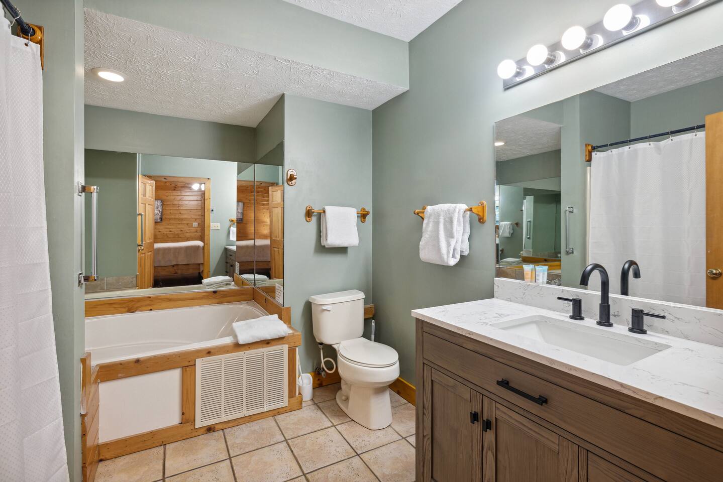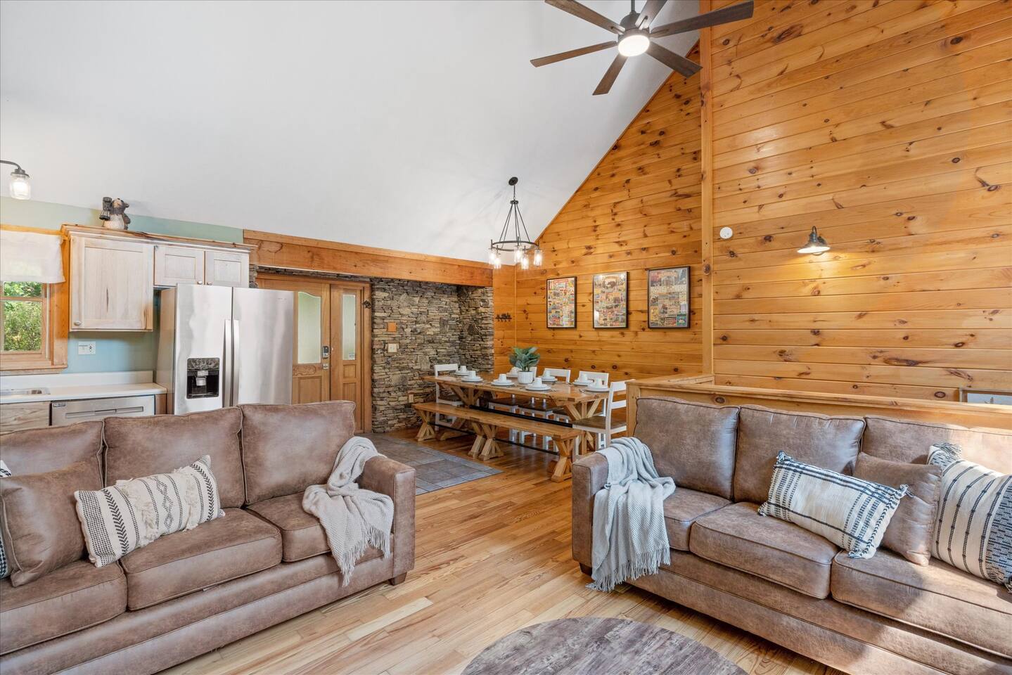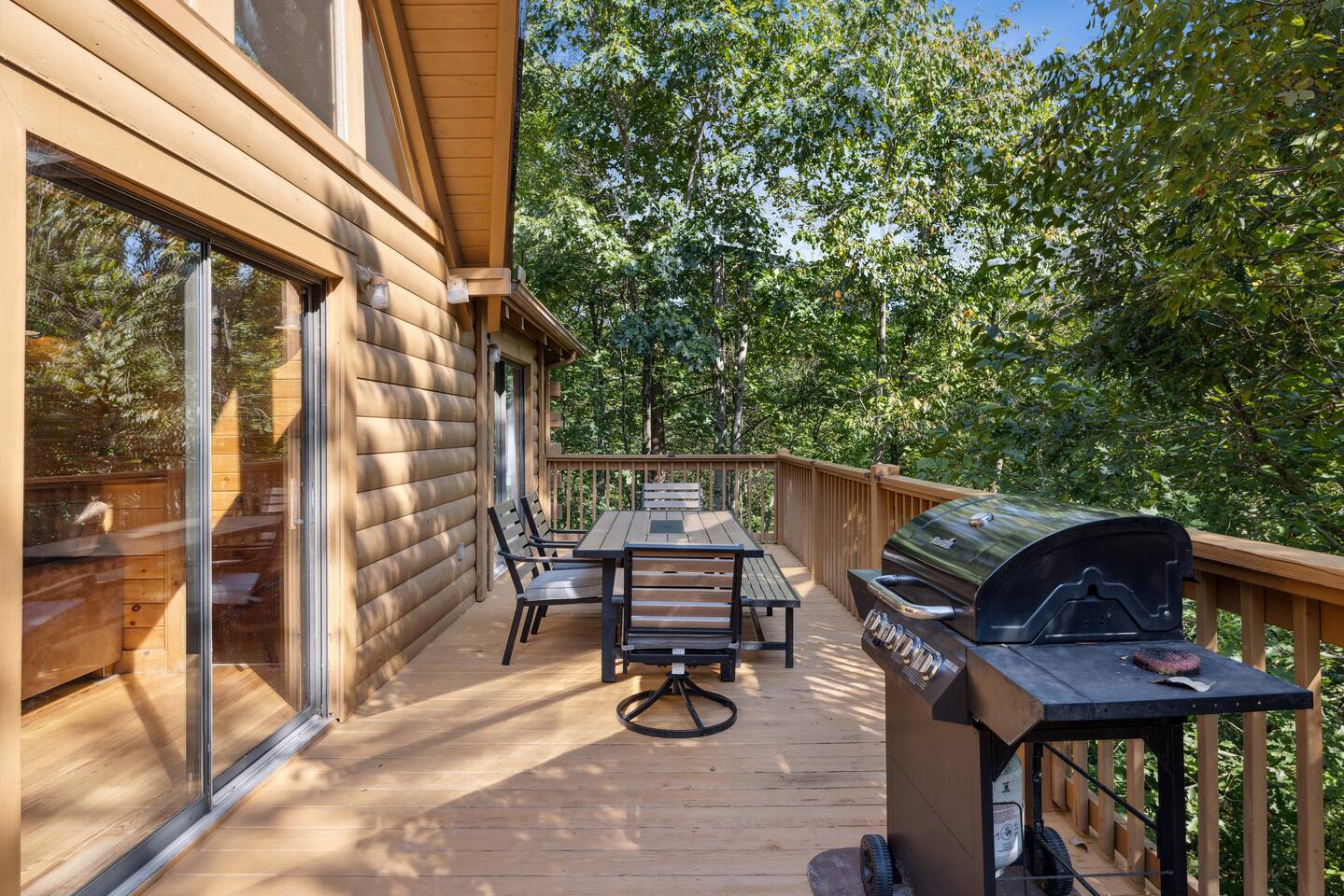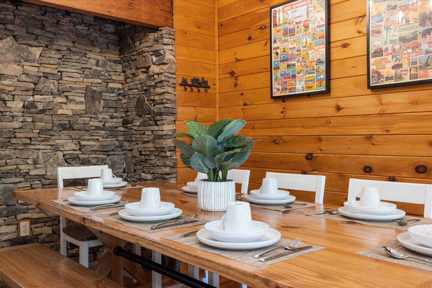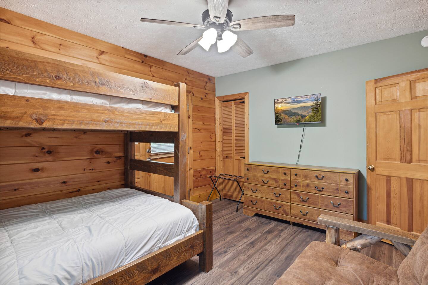 📸 Check the photos for a full floor-plan and aerial drone views that show off just how close you really are to the attractions. --- 🛌 **SLEEPING ARRANGEMENTS** We sleep up to 13 guests comfortably across 4 private bedrooms + bonus sleeping space in the game room: • Bedroom 1 – King bed, private bath with spa tub • Bedroom 2 – King bed, private bath with spa tub + desk & LCD monitor • Bedroom 3 – Queen bed, private bath with spa tub • Bedroom 4 – Bunk bed (twin over full) + futon with adjacent full bath • Game Room – Sleeper sofa + nearby full bath and half bath --- 🌲 **OUTDOOR LIVING** • Covered front porch with swing and cushioned sectional • Two private rear decks with rocking chairs, outdoor dining sets, and a BBQ grill • Brand new hot tub surrounded by trees • Side yard available for outdoor activities (note: it’s hilly) --- 🔥 **INDOOR LIVING** • 6 Smart TVs throughout the home • Full sports package: ESPN, SEC, MLB, Golf Channel, NHL, NBATV & more • Gas fireplace, ceiling fans, board games, and arcade with 60+ games • Cozy living spaces, dining area, and 3 jetted spa tubs • Fully furnished --- 🍳 **EVERYDAY ESSENTIALS** • Fully equipped kitchen with stainless steel appliances • Cooking basics, flatware, dishware, and coffee maker • High-speed WiFi (50+ Mbps), keyless entry, pack n’ play, washer/dryer on site and free • Central heating & AC, fresh linens/towels, starter toiletries, Iron/board and cleaning essentials --- 🚗 **GETTING AROUND** • Skip the Parkway traffic! Access Publix, Kroger, and tons of shops, gas stations, and restaurants without ever hitting the main drag. • Dollywood and nearly every Pigeon Forge attraction are within 5 miles—spend more time exploring and less time driving. --- 📍***LOCATION*** Just 1 mile from the Parkway, this cabin offers unbeatable access to the best of the Smokies—without steep roads or heavy traffic. Whether you're here to explore, relax, or do a little of both, you're never far from the action. • 🎡 The Island in Pigeon Forge – Shops, rides, and live music (4-7 min) • 🎢 Dollywood & Splash Country – 5-8 min drive • 🏁 Go-Karts – 5 min • 🥘 Old Mill Historic District – Southern dining, bakery, shops (6 min) • 🛍️ Tanger Outlets in Sevierville – 10 min • 🍷 Tennessee Shine Co. & Moonshine Tastings – 5 min • 🐻 Smoky Mountain Alpine Coaster – 12 min • 🥾 Great Smoky Mountains National Park – 20–25 min to trailheads --- 🅿️ **FREE PARKING** • Huge private driveway fits 6–8 vehicles • Additional on-street parking available --- 🚫 **NO CHORES, JUST CHECK OUT** We don’t believe in checkout scavenger hunts. No stripping beds—just lock up and go.