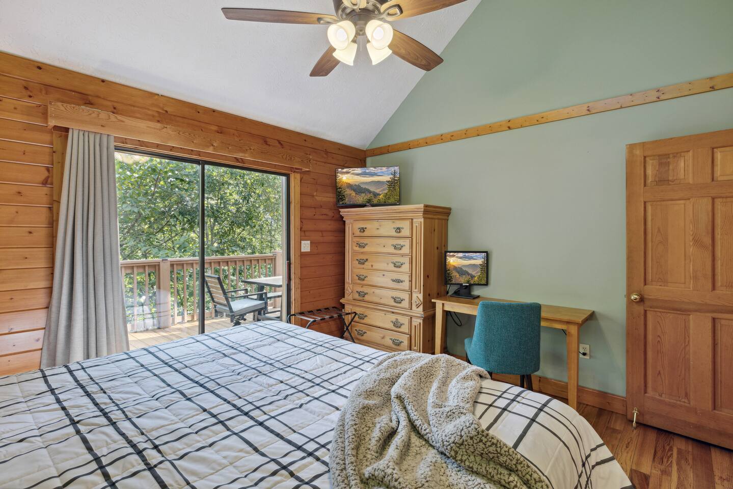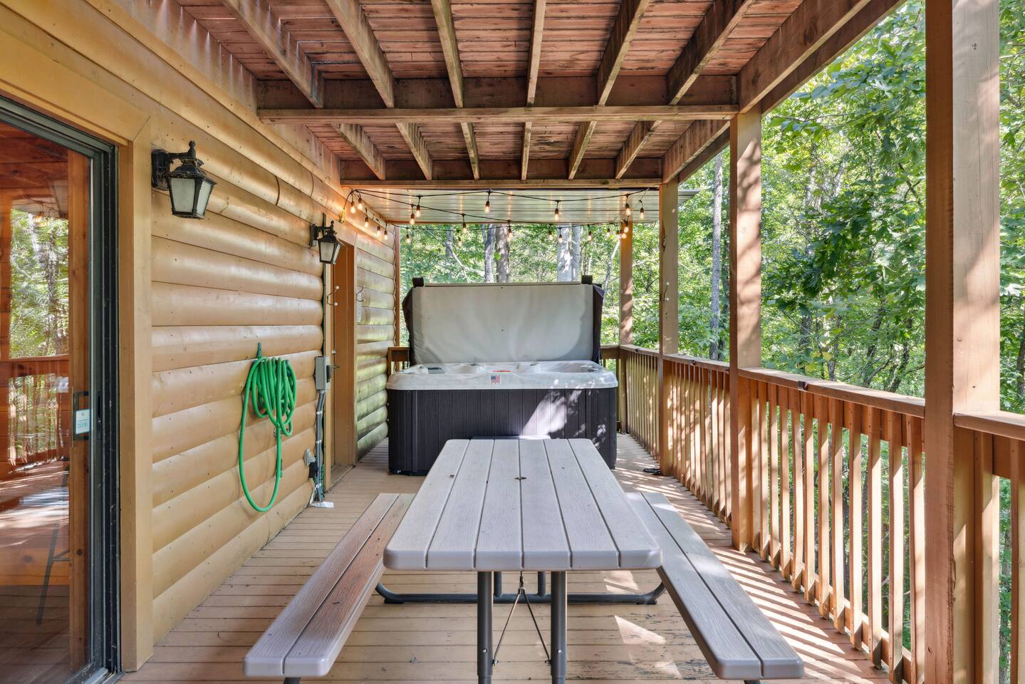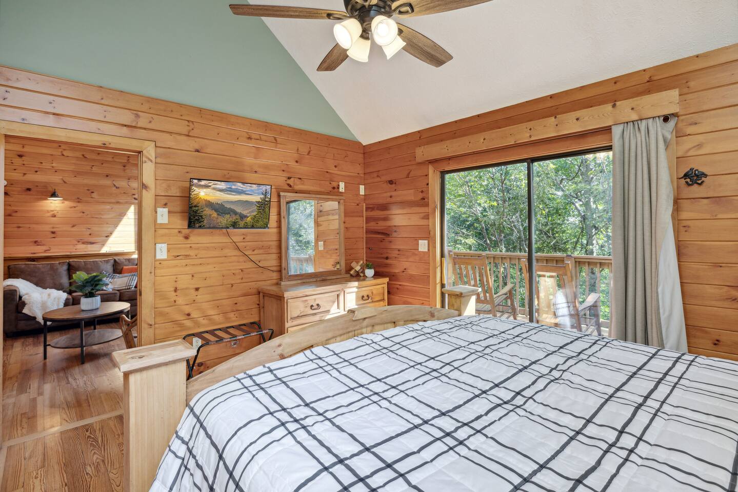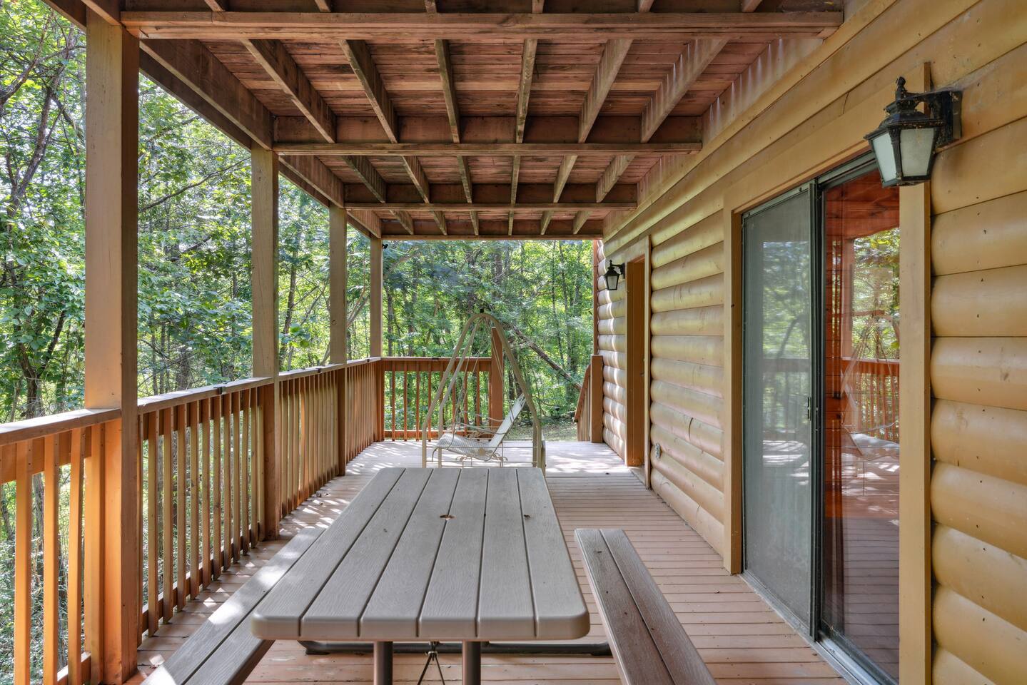 📸 Check the photos for a full floor-plan and aerial drone views that show off just how close you really are to the attractions. --- 🛌 **SLEEPING ARRANGEMENTS** We sleep up to 13 guests comfortably across 4 private bedrooms + bonus sleeping space in the game room: • Bedroom 1 – King bed, private bath with spa tub • Bedroom 2 – King bed, private bath with spa tub + desk & LCD monitor • Bedroom 3 – Queen bed, private bath with spa tub • Bedroom 4 – Bunk bed (twin over full) + futon with adjacent full bath • Game Room – Sleeper sofa + nearby full bath and half bath --- 🌲 **OUTDOOR LIVING** • Covered front porch with swing and cushioned sectional • Two private rear decks with rocking chairs, outdoor dining sets, and a BBQ grill • Brand new hot tub surrounded by trees • Side yard available for outdoor activities (note: it’s hilly) --- 🔥 **INDOOR LIVING** • 6 Smart TVs throughout the home • Full sports package: ESPN, SEC, MLB, Golf Channel, NHL, NBATV & more • Gas fireplace, ceiling fans, board games, and arcade with 60+ games • Cozy living spaces, dining area, and 3 jetted spa tubs • Fully furnished --- 🍳 **EVERYDAY ESSENTIALS** • Fully equipped kitchen with stainless steel appliances • Cooking basics, flatware, dishware, and coffee maker • High-speed WiFi (50+ Mbps), keyless entry, pack n’ play, washer/dryer on site and free • Central heating & AC, fresh linens/towels, starter toiletries, Iron/board and cleaning essentials --- 🚗 **GETTING AROUND** • Skip the Parkway traffic! Access Publix, Kroger, and tons of shops, gas stations, and restaurants without ever hitting the main drag. • Dollywood and nearly every Pigeon Forge attraction are within 5 miles—spend more time exploring and less time driving. --- 📍***LOCATION*** Just 1 mile from the Parkway, this cabin offers unbeatable access to the best of the Smokies—without steep roads or heavy traffic. Whether you're here to explore, relax, or do a little of both, you're never far from the action. • 🎡 The Island in Pigeon Forge – Shops, rides, and live music (4-7 min) • 🎢 Dollywood & Splash Country – 5-8 min drive • 🏁 Go-Karts – 5 min • 🥘 Old Mill Historic District – Southern dining, bakery, shops (6 min) • 🛍️ Tanger Outlets in Sevierville – 10 min • 🍷 Tennessee Shine Co. & Moonshine Tastings – 5 min • 🐻 Smoky Mountain Alpine Coaster – 12 min • 🥾 Great Smoky Mountains National Park – 20–25 min to trailheads --- 🅿️ **FREE PARKING** • Huge private driveway fits 6–8 vehicles • Additional on-street parking available --- 🚫 **NO CHORES, JUST CHECK OUT** We don’t believe in checkout scavenger hunts. No stripping beds—just lock up and go.